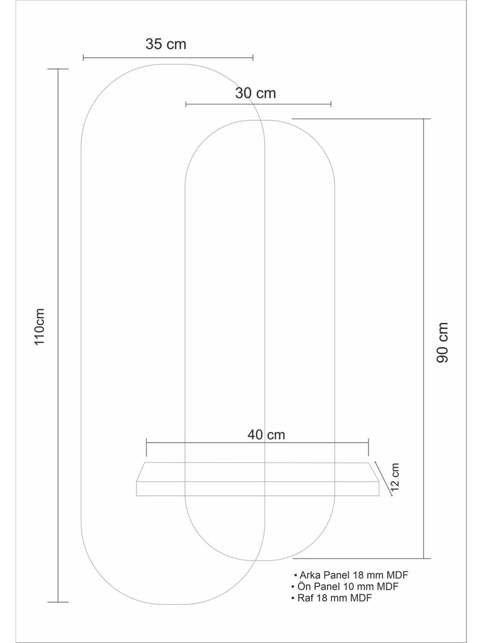 • Malzeme: 1. sınıf MDF