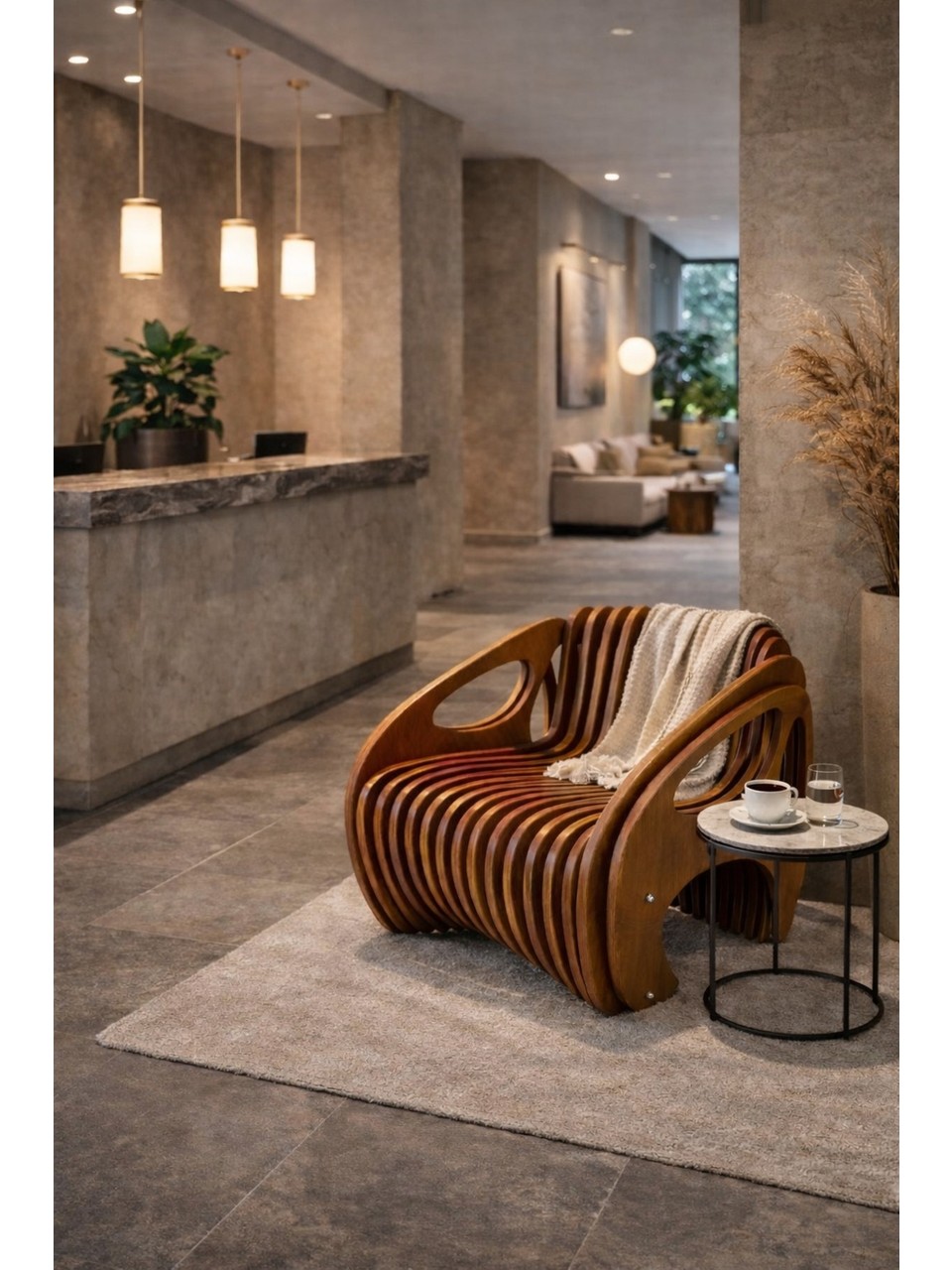 Evode Design Marin Kayın Tasarım Koltuğu, doğadan ilham alan organik çizgileriyle hem iç hem dış mekânlarda estetik ve konforu bir araya getirir. Özel katmanlı formu, ergonomik yapısı ve masif kayın marin ağacı kullanımı sayesinde sıradan bahçe mobilyalarının çok üzerinde bir kalite sunar.